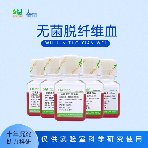 【货号】 SBJ-ST-BO004【规格】 100mL【保存】 2~8℃,1个月。【产品简介】无菌脱纤维牛血是通过无菌采集牛血,经脱纤维处理制成。【使用方法】 根据具体实验来使用。【注意事项】1、注意不可冻融。2、每天轻轻颠倒混匀。3、注意无菌操作,低温保存,开封后请尽快使用。4、避免超长时间超远距离运输。